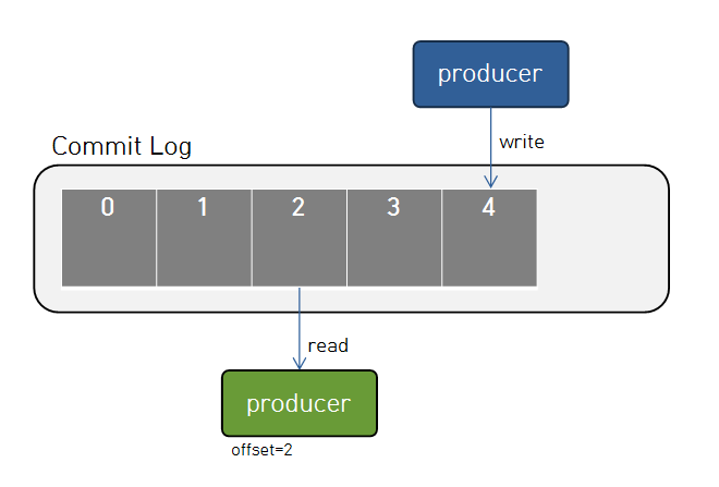 4. commit log: 추가만 가능하고 변경 불가능한 Data Structure. 메시지는 항상 로그 끝에 추가된다.(한번 추가되면 변경이 불가능)